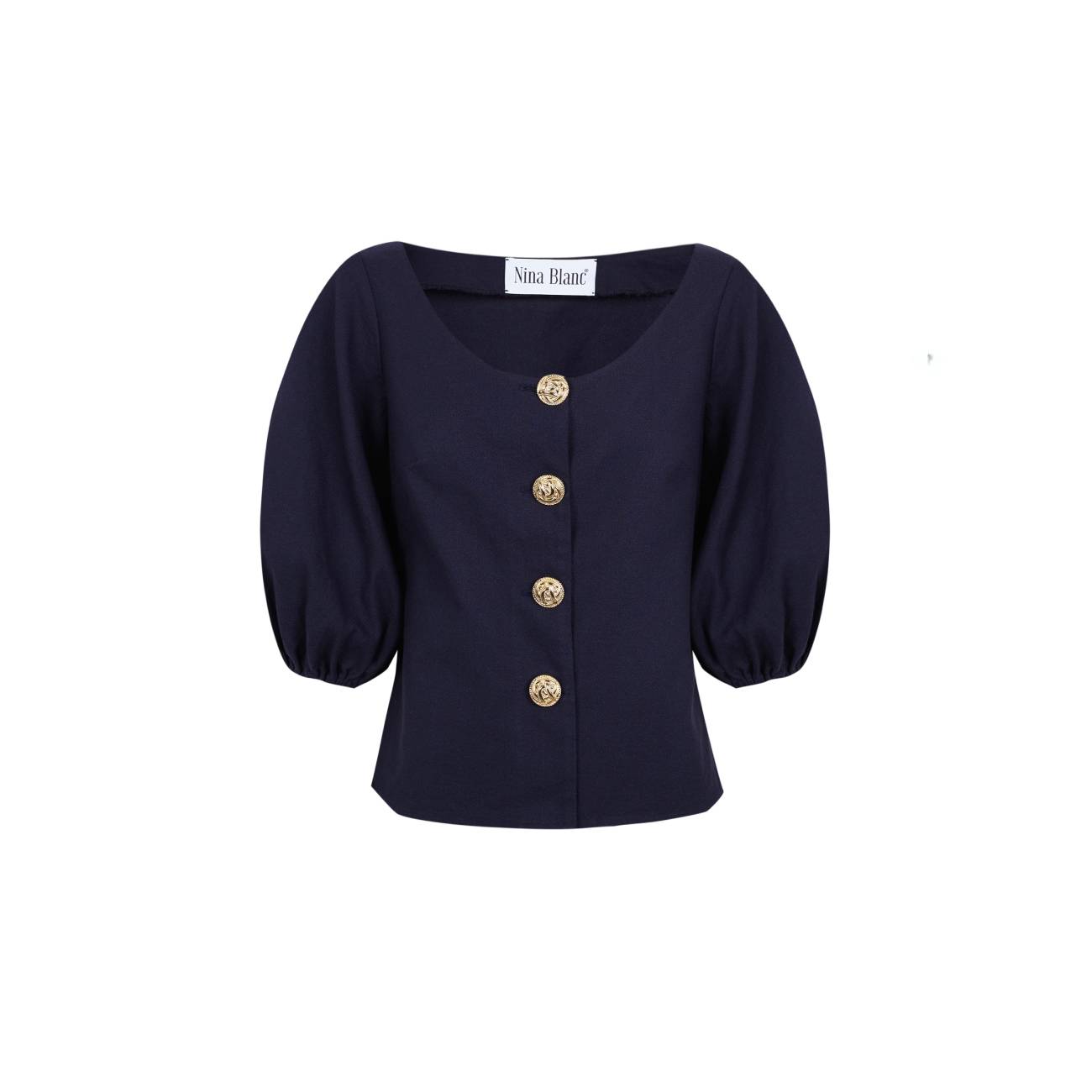 El Navy Cleo es un top femenino azul marino que combina elegancia clásica con un toque moderno. Su amplio escote redondo y mangas abullonadas crean una silueta romántica y sofisticada, mientras que los cuatro botones dorados aportan un detalle lujoso. Con un corte ligeramente entallado realza la figura de forma natural. Confeccionado a mano en una mezcla de 96% algodón y 4% lana merino, ofrece suavidad, calidez y alta calidad. Su profundo azul marino aporta elegancia y clase, convirtiéndolo en un top versátil y fácil de combinar. Un básico imprescindible que aporta un aire femenino además de un carácter elegante y formal.