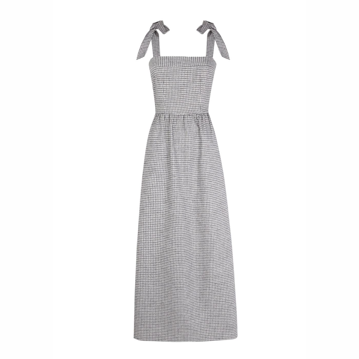 Elegante y confeccionado a mano, nuestro vestido Val es largo hasta el tobillo, está hecho en un tejido 100% algodón en pata de gallo negro y blanco. Cuenta con un cuerpo estructurado, delicados lazos en los hombros y una cintura suavemente fruncida, que crea una silueta recta, sofisticada y alargada. Tiene bolsillos y cierre trasero con cremallera.