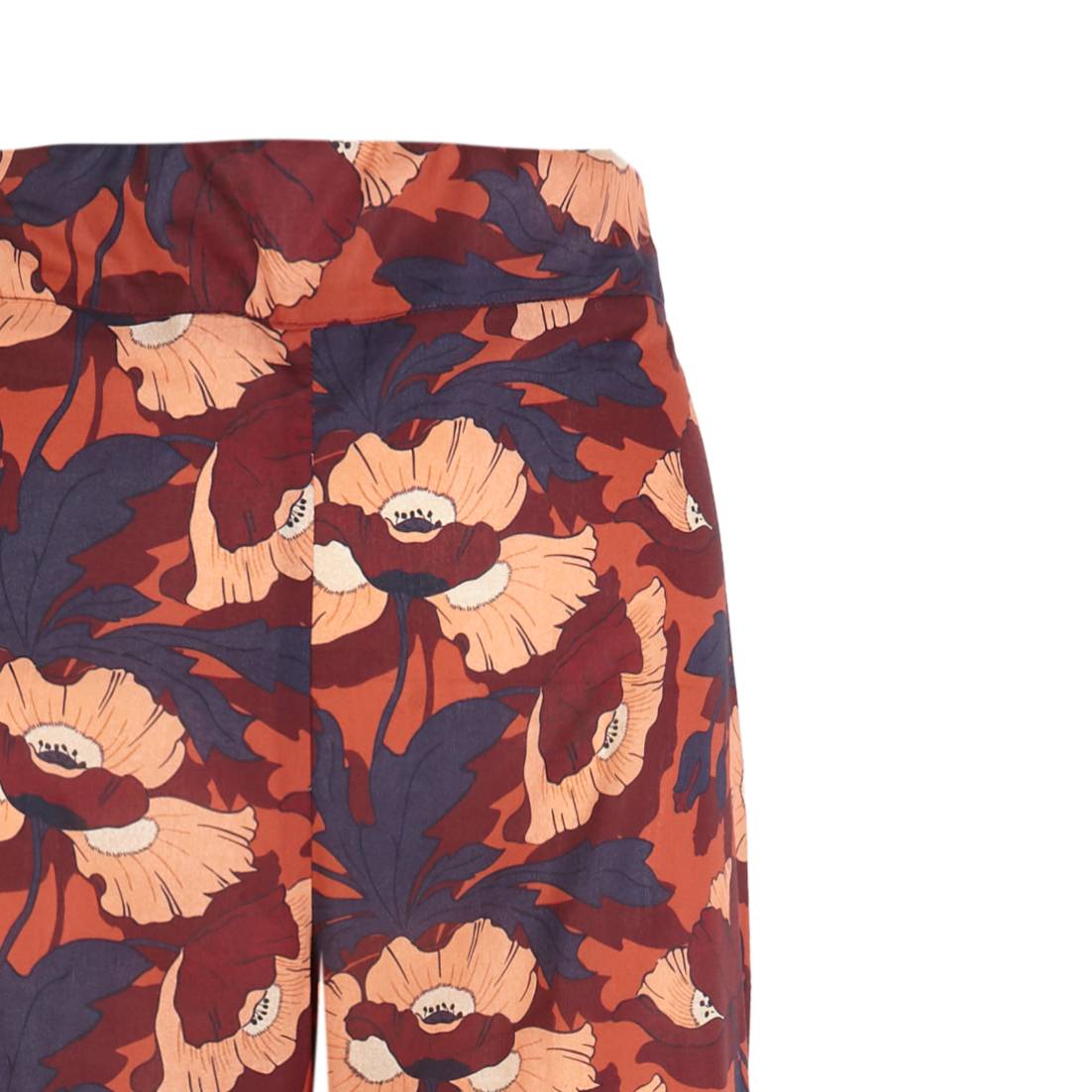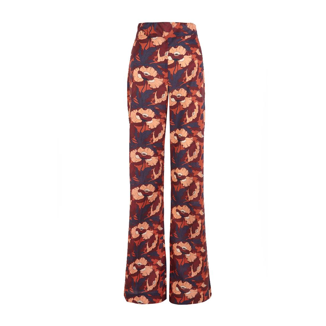Estos pantalones de tiro alto están confeccionados en una tela exclusiva de Liberty, reconocida por su suavidad y calidad superior. Con estampado floral en tonos burdeos, melocotón y azul marino. La silueta de pierna ligeramente acampanada ofrece comodidad y elegancia con un estilo distintivo. Con cinturilla elástica.
