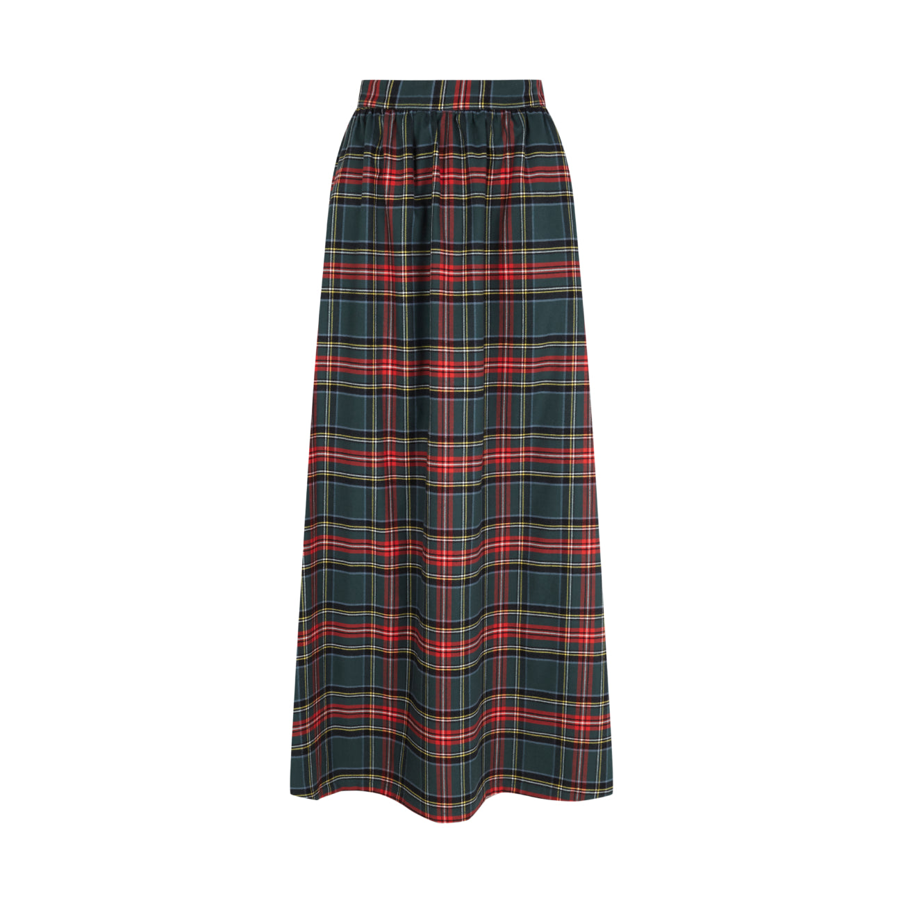 Cuidadosamente confeccionada, esta elegante falda presenta una silueta larga hasta el tobillo y cintura definida. Elaborada en algodón en un tartán rojo y verde. Incluye bolsillos laterales y cierre invisible trasero. Una pieza atemporal que combina practicidad, sofisticación y delicada feminidad.