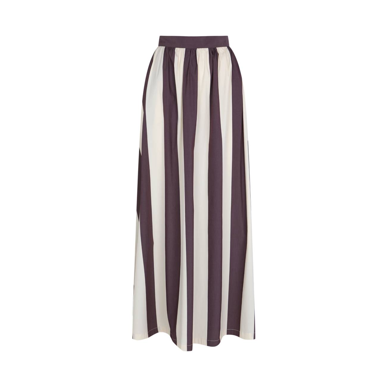 Confeccionada artesanalmente, esta elegante falda presenta una silueta larga hasta el tobillo y cintura definida. Elaborada en un tejido a rayas marrón y negro. Incluye bolsillos laterales y cierre invisible trasero. Una pieza atemporal que combina practicidad, sofisticación y delicada feminidad.