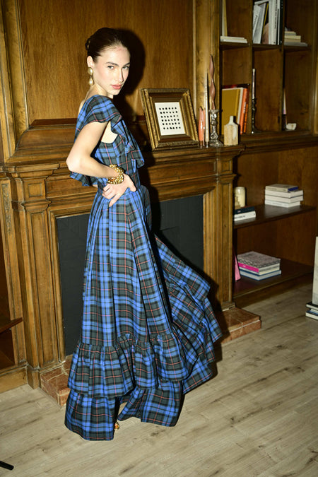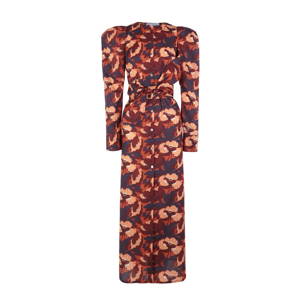 Our striking Nicki dress, with long-sleeved, is crafted from premium Liberty Fabrics. With structured shoulders, front button closure, and a self-tie waist belt, it defines the silhouette with elegance and strength. A timeless statement piece that blends heritage craftsmanship with modern design.